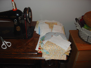 Here are the pieces for the Falling Charms quilt, ready for action.