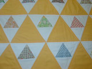 All the print triangles in the quilt are from that $8.00 scrap bag. These 3 are the only triangles I had left after finishing the blocks.